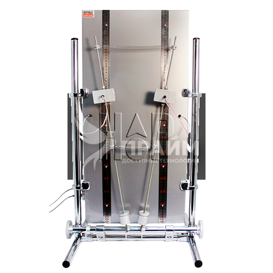 Связь между маятниками обеспечивается двумя пружинами, которые крепятся к стержням по разные стороны от оси вращения. Для подстройки периодов колебаний грузы могут перемещаться вдоль стержней. Стартовое устройство осуществляет синхронный запуск маятников с требуемой разностью фаз колебаний.